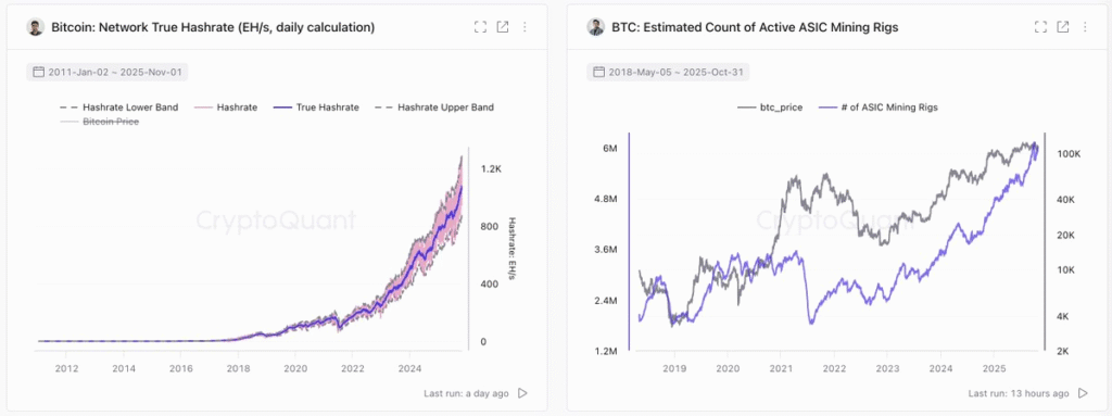 در سوی دیگر، هشریت شبکه بیت کوین همچنان رکوردهای تازهای ثبت میکند و اکنون حدود ۵.۹۶ میلیون دستگاه ماینر ASIC فعال در شبکه وجود دارد. شرکتهای استخراج عمومی نیز نه تنها کوچکتر نشدهاند، بلکه در حال گسترش ظرفیت هستند؛ عاملی که یانگ جو آن را نشانهای صعودی برای بلندمدت میداند و میگوید «کشتی پولی بیت کوین هنوز در حال بزرگتر شدن است».