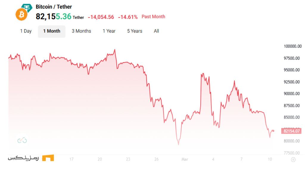 لازم به ذکر است که بیت کوین پس از این افت شدید، از کف محلی خود بازیابی شد و هم‌اکنون در حدود ۸۲,۵۰۰ دلار معامله می‌شود. با این حال، این ارز دیجیتال همچنان در تایم‌فریم هفتگی و ماهانه در محدوده منفی قرار دارد.