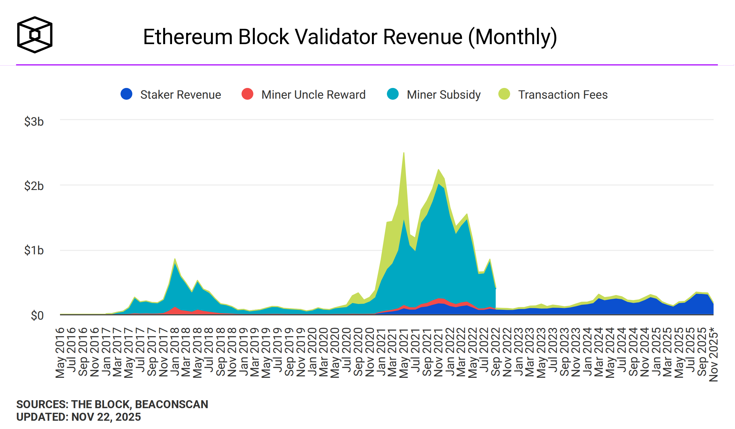 در نگاه اول ممکن است خیال کنید که استیکرها پاداش می‌گیرند؛ اما این برداشت کاملاً اشتباه است. این پاداش‌ها در واقع نوعی تورم و رقیق‌سازی هستند؛ هزینه‌ای که شبکه برای تأمین امنیت خود می‌پردازد، نه سود واقعی. ارزش اقتصادی حقیقی جایی شکل می‌گیرد که کاربران کارمزد بپردازند؛ یعنی کارمزد تراکنش‌ها، tips و درآمد MEV. این بخش را می‌توان نزدیک‌ترین چیز به درآمد برای یک بلاکچین دانست.