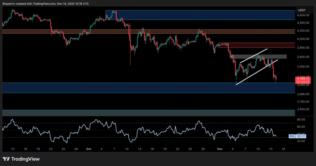۲. اتریوم (ETH) | فشار ETFها و نبرد بر سر کف ۳٬۰۰۰ دلار