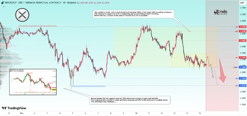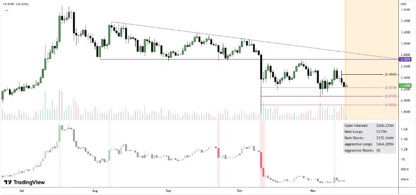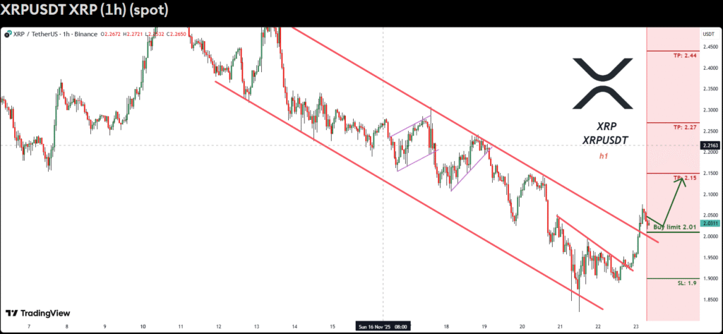 قیمت لحظهای XRP حوالی ۲.۴۴ دلار است. ساختار قیمتی بین ۲.۲۰ تا ۲.۳۰ و ۲.۴۰ تا ۲.۶۰ در رفتوبرگشت است؛ خروج معتبر از این کادر جهت بعدی را تعیین میکند. با توجه به حساسیت خبری/حقوقی، تأیید روی تایمفریمهای بالاتر را جدی بگیرید.