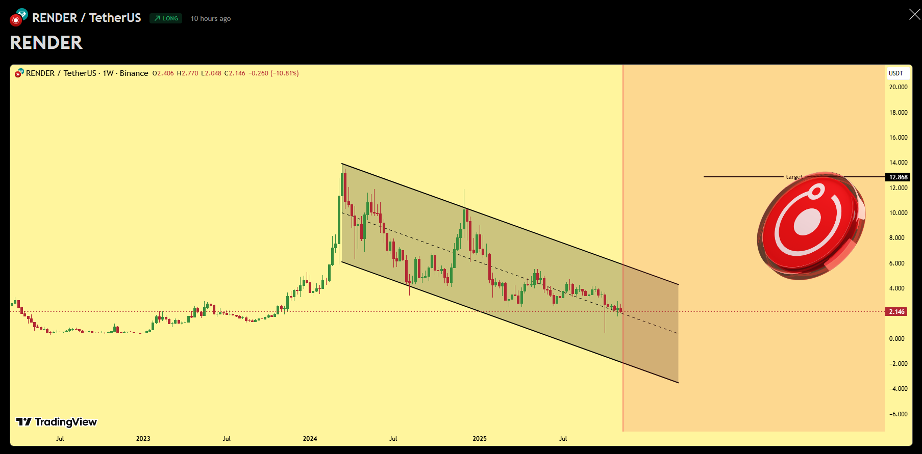 - یک تحلیل قدیمیتر، حمایتهای اصلی را ۱٫۵۲ دلار و سپس ۰٫۳۸ دلار و مقاومتها را تا ۱۳٫۸۳ دلار و حتی سناریوهای بسیار خوشبینانه مطرح کرده بود؛ اما آن تحلیل مربوط به زمانی است که RNDR حدود ۱۰٫۶۶ دلار قیمت داشت، بنابراین الان بیشتر نقش یک مرجع بلندمدت را دارد تا راهنمای کوتاهمدت.