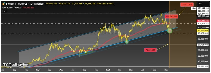 - در سمت مقاومت، محدوده ۹۴٬۰۰۰ تا ۹۶٬۰۰۰ دلار و بالاتر از آن ۱۰۰٬۰۰۰ تا ۱۰۱٬۰۰۰ دلار موانع جدی قبل از هر ساختار صعودی پایدار هستند.