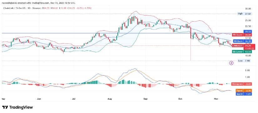 قیمت لحظهای ارز LINK حدود ۱۵.۱۲ دلار است. محرک کوتاهمدت بازار برای LINK « پاداشدهی فصل اول» است که از ۱۱ نوامبر فعال میشود و برای پروژههای Build پاداش اختصاص میدهد؛ رویدادی که میتواند تقاضای وایرال برای ارز لینک ایجاد کند. از نظر تکنیکال، ناحیه ۱۵ دلار خط دفاعی نزدیک است؛ بازیابی بالای ۱۶ تا ۱۶.۵ مسیر ۱۸ تا ۲۰ را دوباره باز میکند.