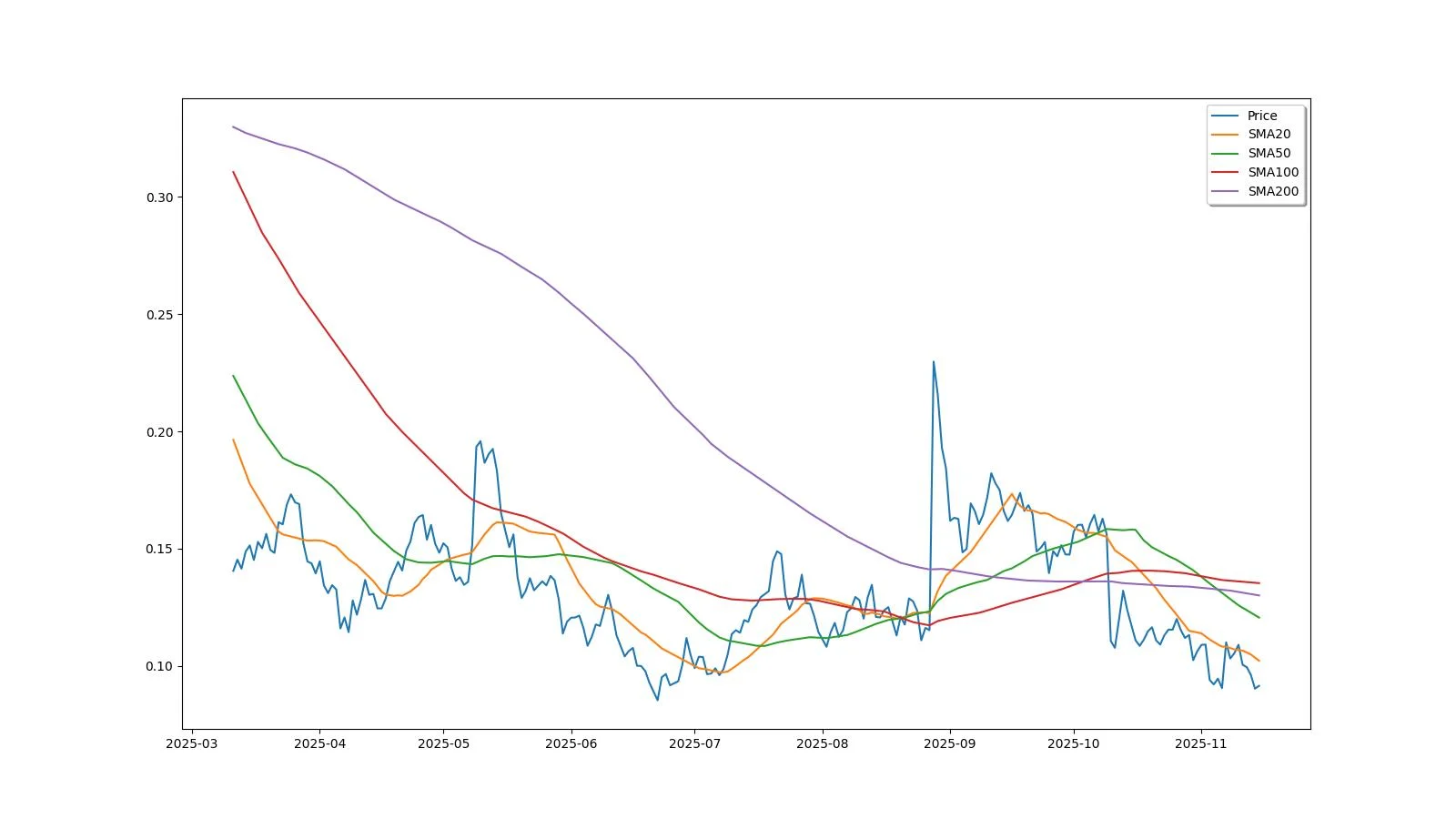 - تحلیل جدیدتر روی CoinMarketCap AI ناحیه ۰٫۰۷ تا ۰٫۱۰ را «زون حیاتی» برای جلوگیری از لیکوییدیشنها میداند؛ شکست زیر ۰٫۰۷ تا ۰٫۰۸ میتواند فشار فروش را تشدید کند، درحالیکه تثبیت بالای ۰٫۱۰ نشانه شروع انباشت خواهد بود.
