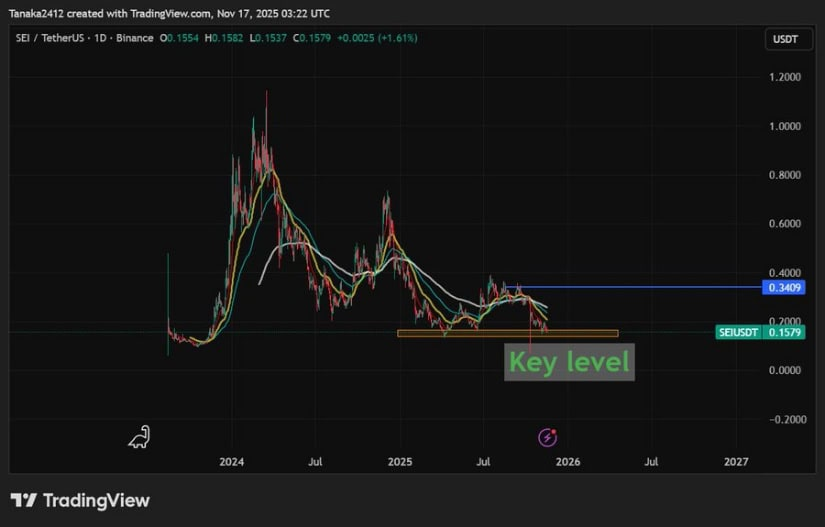 در یک تحلیل جدیدتر، گفته شده SEI الان بین حمایت ۰٫۱۴ و مقاومت ۰٫۱۵ در نوسان است؛ بالای ۰٫۱۵ میتواند هدف ۰٫۲۰ را فعال کند و زیر ۰٫۱۴ احتمال افت تا حوالی ۰٫۱۰ مطرح میشود. در عین حال، جمعبندی چندین اندیکاتور تکنیکال، تصویر کلی را بِرِیش (نزولی) توصیف میکند؛ حدود ۷۶٪ سیگنالها در جهت نزولاند.