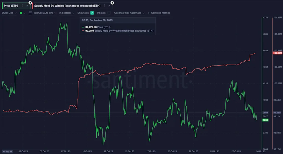 اتریوم در حدود ۲٬۷۴۲ دلار معامله میشود؛ سقف امروز ۲٬۸۲۶ و کف ۲٬۶۲۹ دلار بوده است. در گزارشهای تحلیلی امروز اشاره شده که ETH بعد از یک افت حدوداً ۱۰٪ هفتگی، زیر ۲٬۸۰۰ دلار تثبیت شده و در یک کانال نزولی کوتاهمدت حرکت میکند.