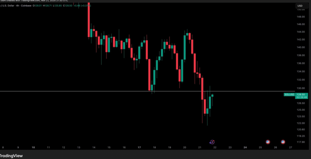 قیمت سولانا در بازار اسپات امروز حدود ۱۳۰.۸ دلار است، با نوسان روزانه بین حدود ۱۲۵ تا ۱۳۱.۵ دلار. در همین حال، گزارشهای تحلیلی نشان میدهد سولانا مدام در تلاش است تا مقاومت ۱۳۰ دلار را پس بگیرد و در عین حال زیر فشار فروش کوتاهمدت، چند بار این سطح را از دست داده است.