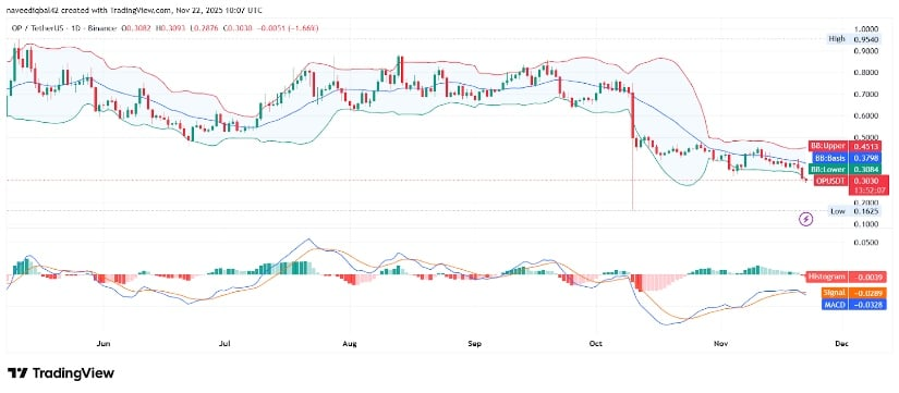 توکن OP امروز حدود ۰.۳۰۶ دلار قیمت دارد و در ۲۴ ساعت گذشته بین حدود ۰.۲۹ و ۰.۳۰۷ دلار معامله شده است. در حالی که قیمت بهوضوح زیر اوجهای تاریخی است، از نظر فاندامنتال اپتیمیسم یکی از مهمترین لایه دوهای اتریوم در واچ لیست امروز محسوب میشود، چون نقش ستون فقرات سوپرچین را بازی میکند.