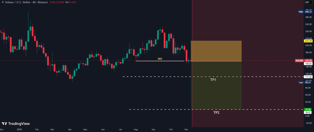 | سولانا | شکست مقاومت ۲۱۳ دلاری و حرکت به سمت ۳۰۰ دلار، رشد بیش از ۱۵ درصدی اخیر، شکلگیری «تقاطع طلایی» میانگینهای متحرک، RSI در محدوده صعودی (۵۸)، احتمال رالی تا ۲۴۰ – ۲۵۰ دلار. | بیش از ۵۰۰ میلیون دلار دارایی واقعی توکنیزهشده و ۱۱ میلیارد دلار استیبل کوین در شبکه، افزایش تراکنشها در حوزه بازی و دیفای، فهرست شدن شرکت SOL Strategies در نزدک. |