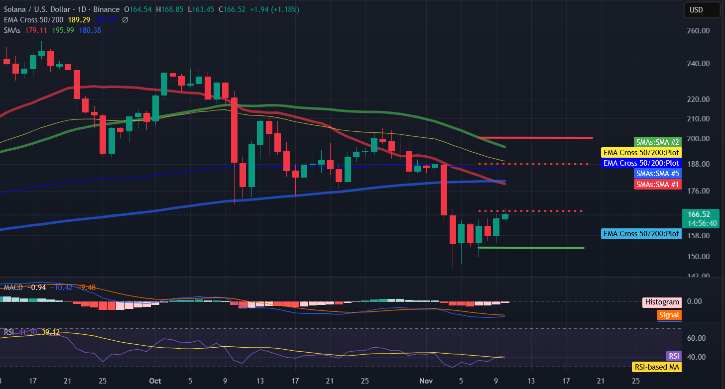 فاندامنتال سولانا برای «واچ لیست امروز» کمنظیر است: آدرسهای ماهانه و روزانه در ۲۰۲۵ رکورد زدهاند، درآمد شبکه در چند فصل متوالی پیشتاز بوده و TVL/حجم DEXها چشمگیر است. تکنیکال روزانه نشان میدهد محدوده ۱۴۹–۱۵۵ بهعنوان حمایت/تعادلی و ۱۷۰–۱۸۰ بهعنوان مقاومت میانمدت زیر نظر است.