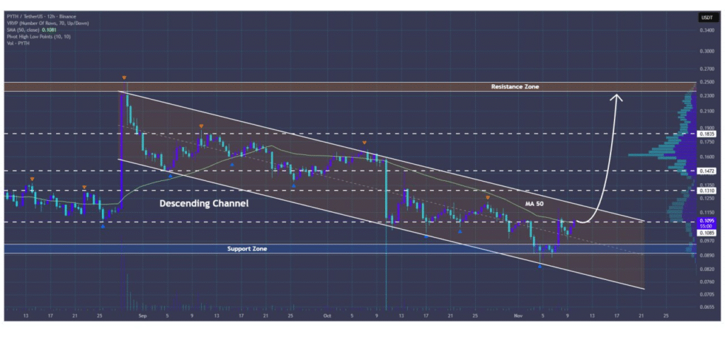 ارز PYTH حوالی ۰٫۱۱۰ دلار در گردش است و طی ماههای گذشته بهخاطر خبرهای همکاری با ارائهدهندگان داده سازمانی و انتشار فیدهای چندبازاره، در مرکز توجه بوده است. گزارش Messari از رشد TVS و افزایش فعالیت بهروزرسانی قیمت، پشتوانه فاندامنتال معناداری برای بلندمدت ایجاد میکند. به لحاظ سطوح، ۰٫۱۰ تا ۰٫۱۰۵ بهعنوان حاشیه دفاعی و ۰٫۱۲ تا ۰٫۱۳ و سپس ۰٫۱۵ مقاومتهای پلهایاند.