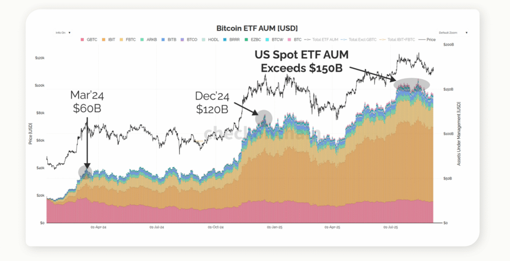ورود ETFها علاوه بر نقدینگی، توازن قدرت در بازار جهانی را هم تغییر داد. از زمان آغاز معاملات آپشن روی ETF بلکراک (IBIT) در اواخر ۲۰۲۴، این صندوق به سرعت از رقبا فاصله گرفت و حالا ۹۰٪ از کل جریان ETFهای جهانی از طریق ETFهای آمریکایی انجام میشود.