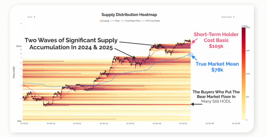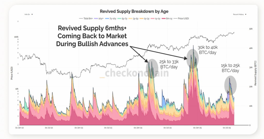 روزانه تنها ۴۵۰ بیت کوین جدید وارد شبکه میشود، رقمی که در برابر حجم فروش دارندگان قدیمی (گاهی تا ۴۰ هزار بیتکوین در روز) تقریباً هیچ است. به قول جیمز چک، یکی از شناختهشدهترین تحلیلگران آنچین بیتکوین (Bitcoin On-chain Analysis):