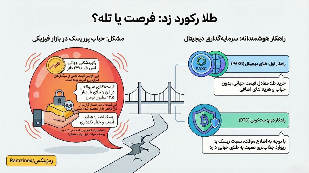 بازار فیزیکی طلا در ایران الان با دو ریسک مواجه است: حباب قیمتی و ریسک نگهداری/سرقت.
