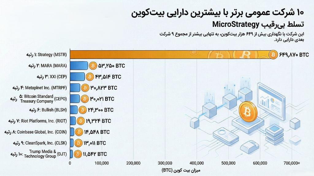 یکی از مهمترین دلایلی که بیت کوین ۲۰۲۵ را با ۲۰۱۸ متفاوت میکند، ورود شرکتها به بازی است. اگر قبلاً به خرید تریدرهای خانگی امید داشتیم، الان استراتژی خزانهداری بیت کوین (Bitcoin Treasury Strategy) که توسط مایکل سیلور و مایکرواستراتژی خلق شد، به یک استاندارد برای شرکتهای پیشرو تبدیل شده است.