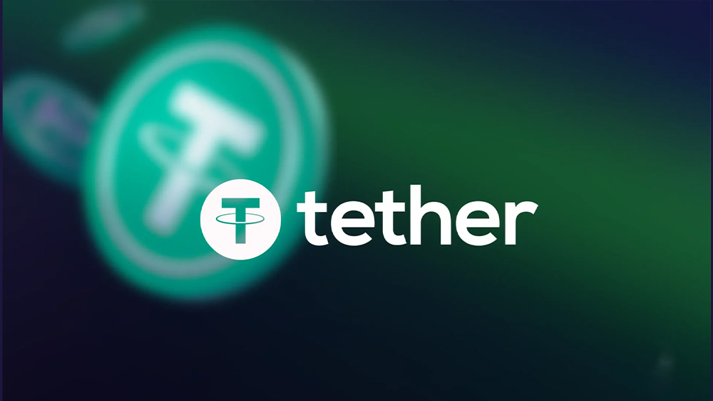 نماد تتر با نام آن در صفحه‌ای با پیش‌زمینه کوین تتر