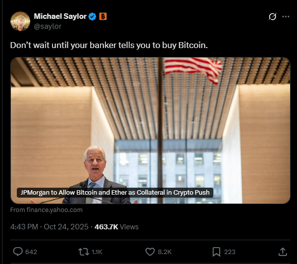 همین دیروز مایکل سیلر، مدیرعامل و بنیانگذار شرکت MicroStrategy و از شناختهشدهترین حامیان بیت کوین در جهان، در جدیدترین پستش در ایکس (توییتر سابق) نوشت: