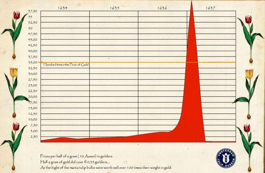 روایتی که معمولا از تولیپ مانیا یا شیدایی گل لاله میشنویم این است: در دهه ۱۶۳۰، هلندیها دیوانه لاله شدند. مردم عادی، خدمتکارها، دودکشپاککنها و نجیبزادهها همه پسانداز خود را فروختند تا پیاز گل لاله بخرند. قیمت بعضی پیازها به حدی بالا رفت که میشد با آن خانهای خوب در آمستردام خرید. بعد ناگهان، در زمستان ۱۶۳۷، بازار فرو ریخت، قیمتها ۹۰ تا ۹۵ درصد سقوط کرد و اقتصاد هلند نابود شد.