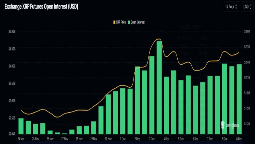 با این حرکت صعودی قیمت، مشارکت معاملهگران به شدت افزایش یافته است، طبق گزارش شرکت تحلیلی آنچین Coinglass. در حال حاضر، علاقه باز ریپل در ۲۴ ساعت گذشته ۵.۴٪ افزایش یافته است و به طور پیوسته در حال افزایش است که نشاندهنده شکلگیری موقعیتهای جدید است.